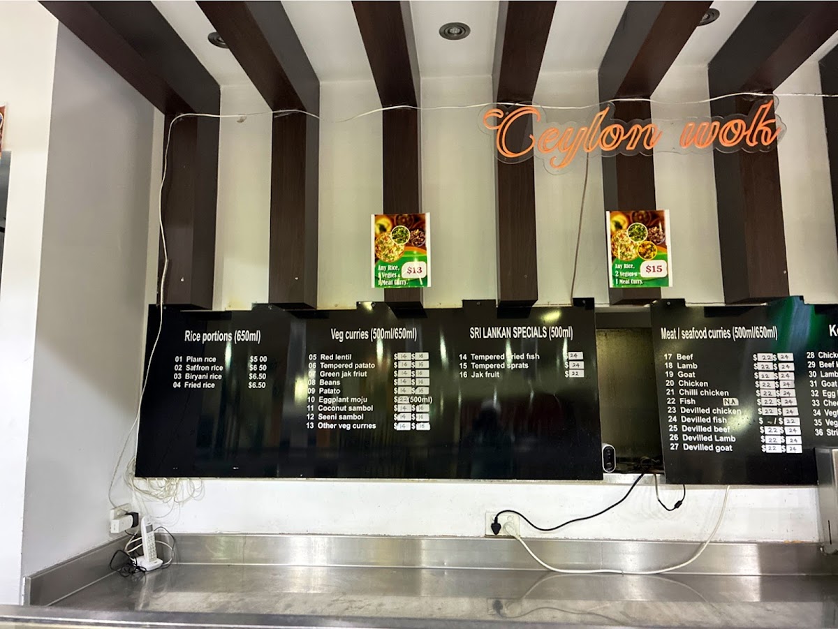 The menu at Ceylon Wok offers a delightful range of dishes that cater to a variety of tastes and preferences, bringing the authentic flavors of Sri Lanka to Melbourne. For meat lovers, the Lamb Curry, Chili Chicken Curry, Deviled Beef Curry, and Fish Curry are rich in spice and depth, providing hearty options for those seeking a flavorful and filling meal. On the vegetarian side, there's an array of aromatic curries like Eggplant Moju, Tempered Potato/Potato Curry, Beans Curry Seeni Sambol, and Red Lentil (Dhal) Curry, each offering a unique combination of spices that celebrate the vibrant vegetarian cuisine of Sri Lanka.